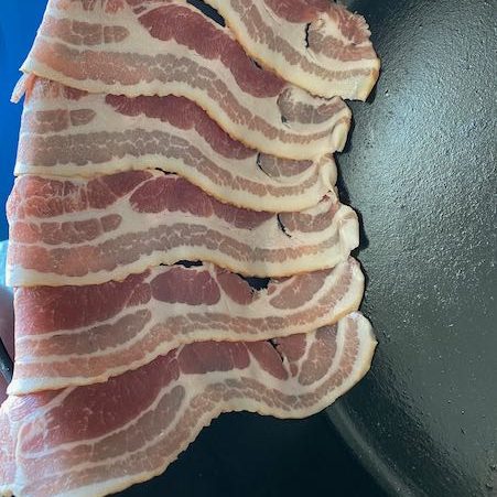 Wir legen nun den Dutch Oven mit Frühstücksspeck aus und schichten dann zuerst eine Schicht Fleisch, dann Zwiebel, Paprika und anschließend wieder Fleisch, Zwiebel, Paprika bis der Topf voll ist. Am Ende bedecken wir alles mit Frühstücksspeck und gießen eine Flasche BBQ Sauce darüber. Deckel drauf und jetzt geht es an das Garen.