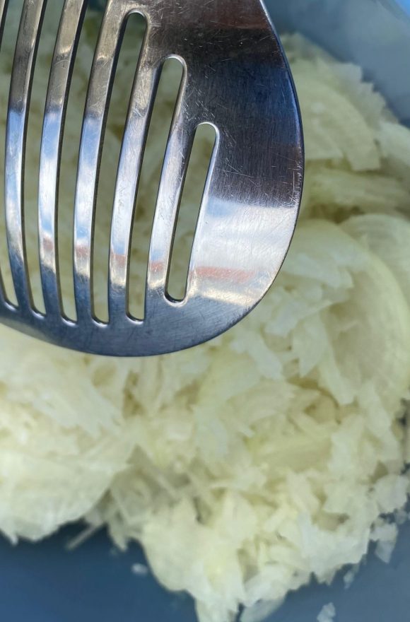1 kg Zwiebeln geschält und in Steifen geschnitten